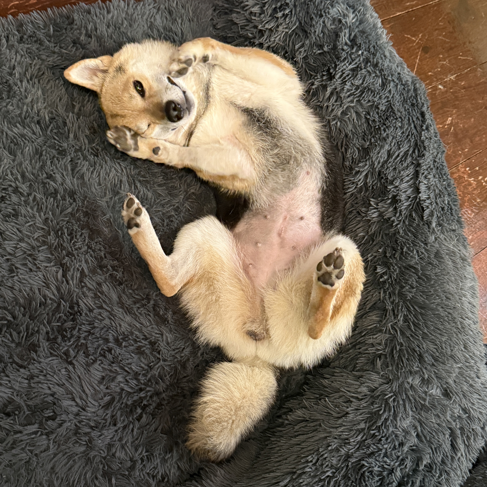 Lumi is a 5 1/2 month old black & tan female shiba. Lumi loves to play and do zoomies around her apartment.